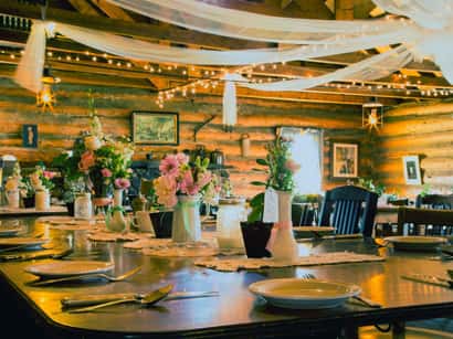 The lodge, located right next to the Gold Hill Inn, is an historic log hotel built in 1872 and is a great place for family & friends to gather either before, during, or after the wedding. The lodge has 9 bedrooms each with a queen sized bed, the baths are located down the hall. It also has two large sitting rooms a dining room and a large kitchen down stairs, along with a big back deck and front porch.
